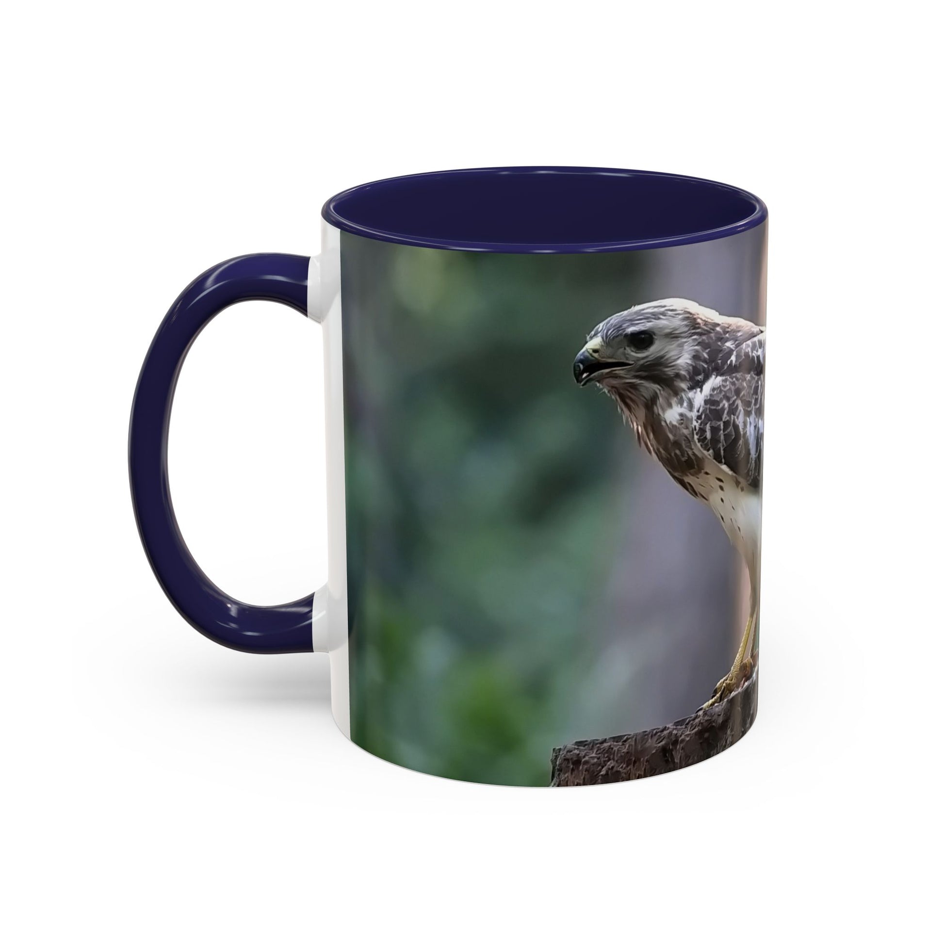 Enjoy your favorite beverage in this unique mug featuring a striking image of a buzzard perched majestically on a weathered tree stump. This isn't just a mug; it's a piece of art that brings the beauty of the wild into your everyday routine.