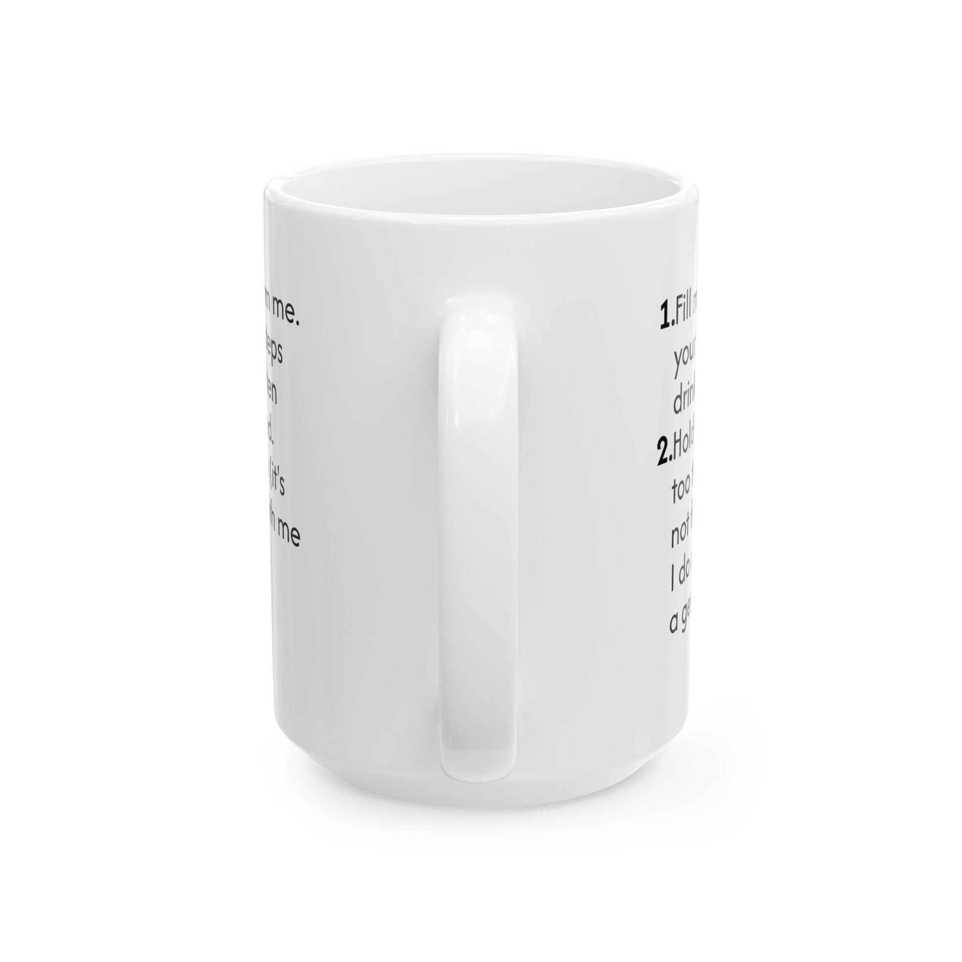 Ceramic Mug — 'Fill Me With Your Favorite Drink' Funny Instructional Coffee Mug (11oz & 15oz)