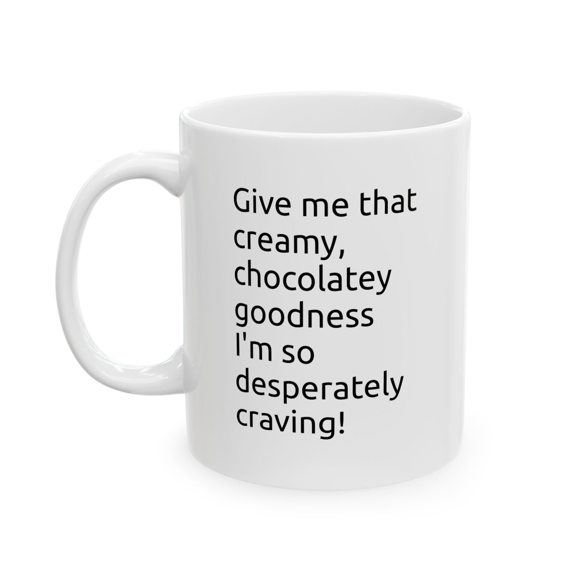 Ceramic Mug — "Give me that creamy, chocolatey goodness" Coffee Cup (11oz, 15oz)