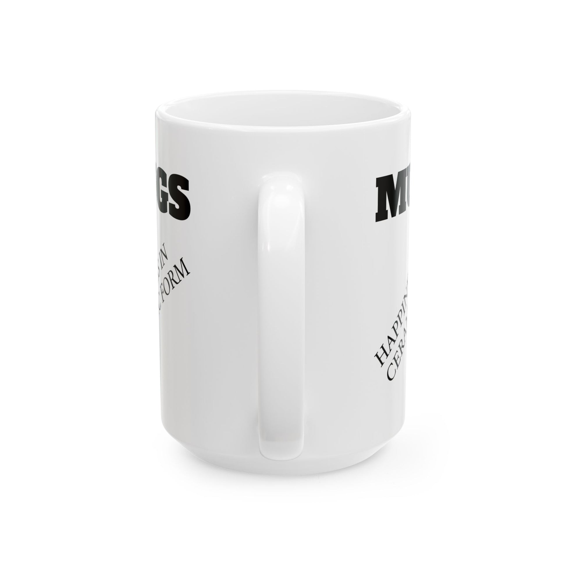 Ceramic Mug — “MUGS: Happiness in Ceramic Form” Funny Coffee Mug, 11oz & 15oz