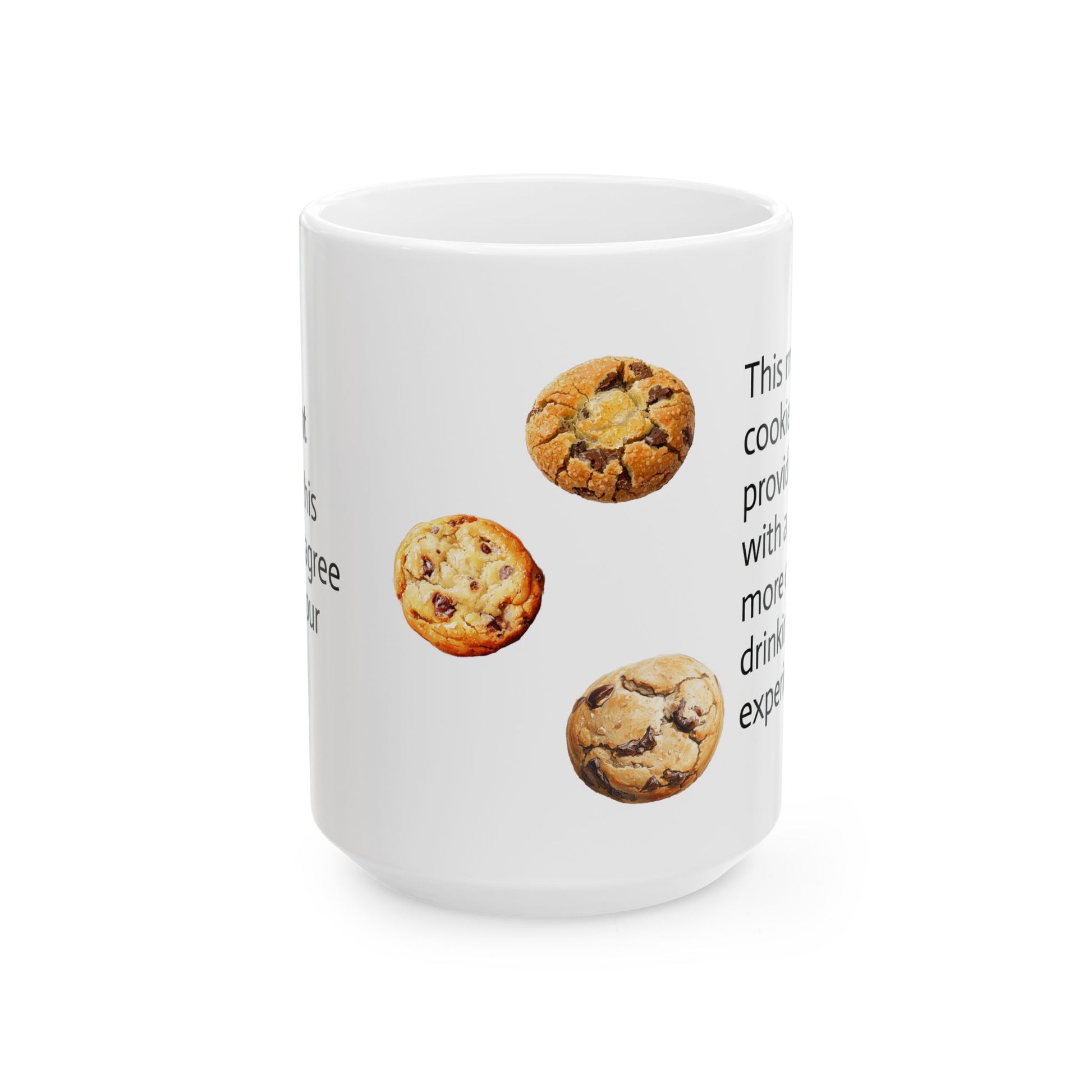 A cheeky, glossy ceramic mug that brings a little humor to your morning routine. White ceramic showcases bright, photo-real cookies and bold black type that reads, “Cookie statement — By using this mug you agree to eat all our cookies.” It’s sturdy, microwave- and dishwasher-safe, and comes in two sizes to match how serious they are about snacks. The easy C-handle feels familiar and comfortable whether you’re sipping coffee between meetings or settling into an evening of TV and cookies. The playful message fits homes, offices, or anyone who enjoys a wink with their caffeine.