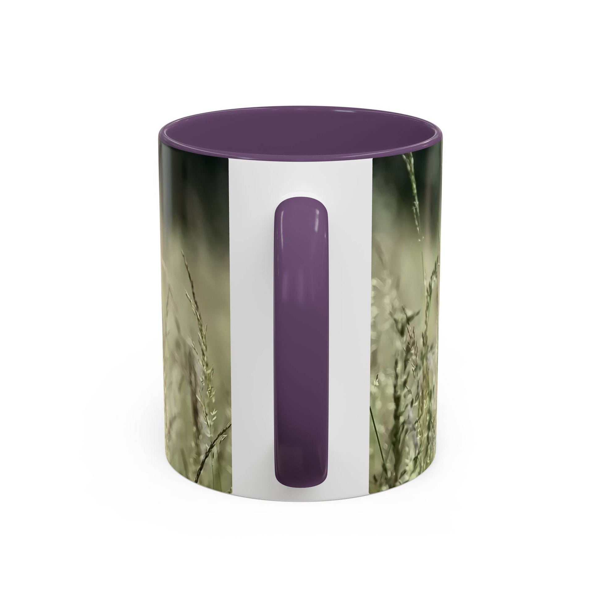 A ceramic mug featuring a design of flowering grass, perfect for bringing a touch of nature inside. This accent mug is ideal for nature lovers, garden enthusiasts, and those who enjoy a peaceful and serene vibe with their morning coffee or tea. Great for Earth Day, Mother's Day, or as a gift for someone who appreciates the beauty of the outdoors.
