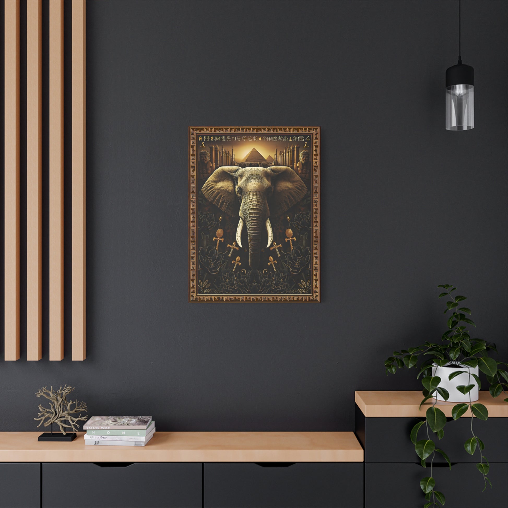 Egyptian Elephant Canvas Print — Pyramid & Ankh Wall Art