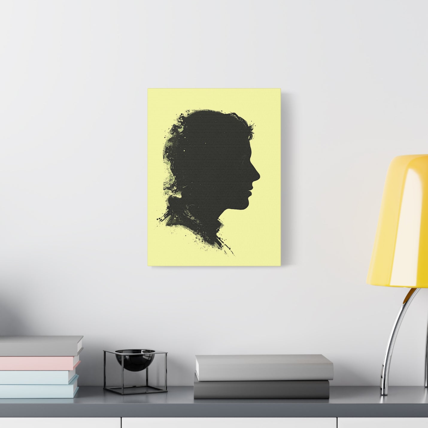 Silhouette Portrait Canvas Print — Vintage Black Profile on Soft Yellow Matte